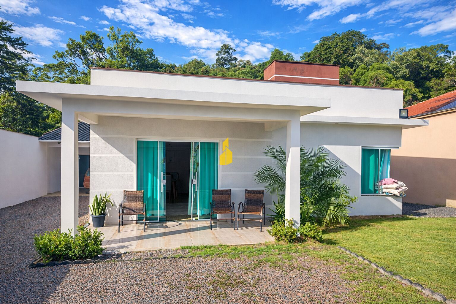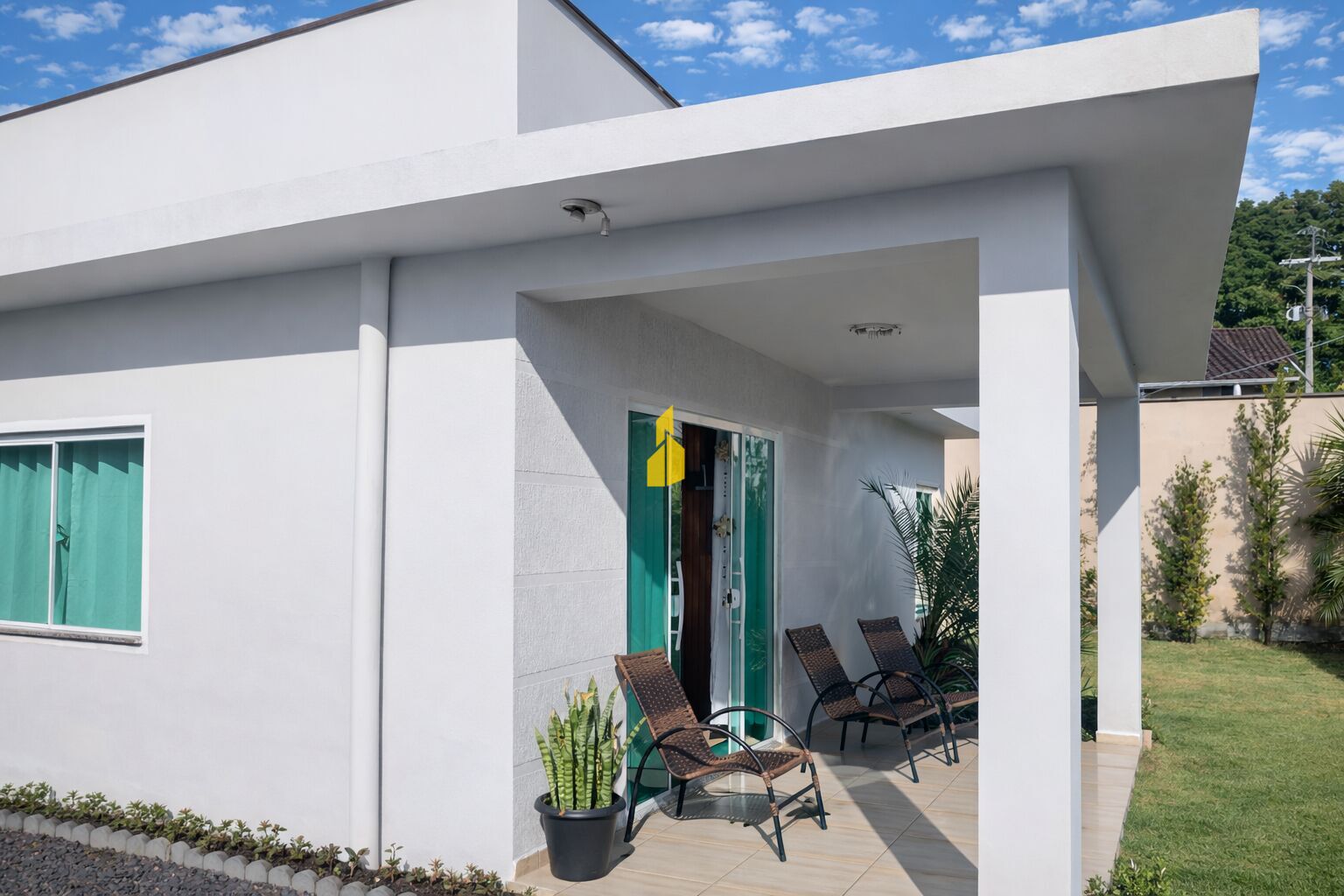 Imóvel moderno com portas e janelas em blindex.