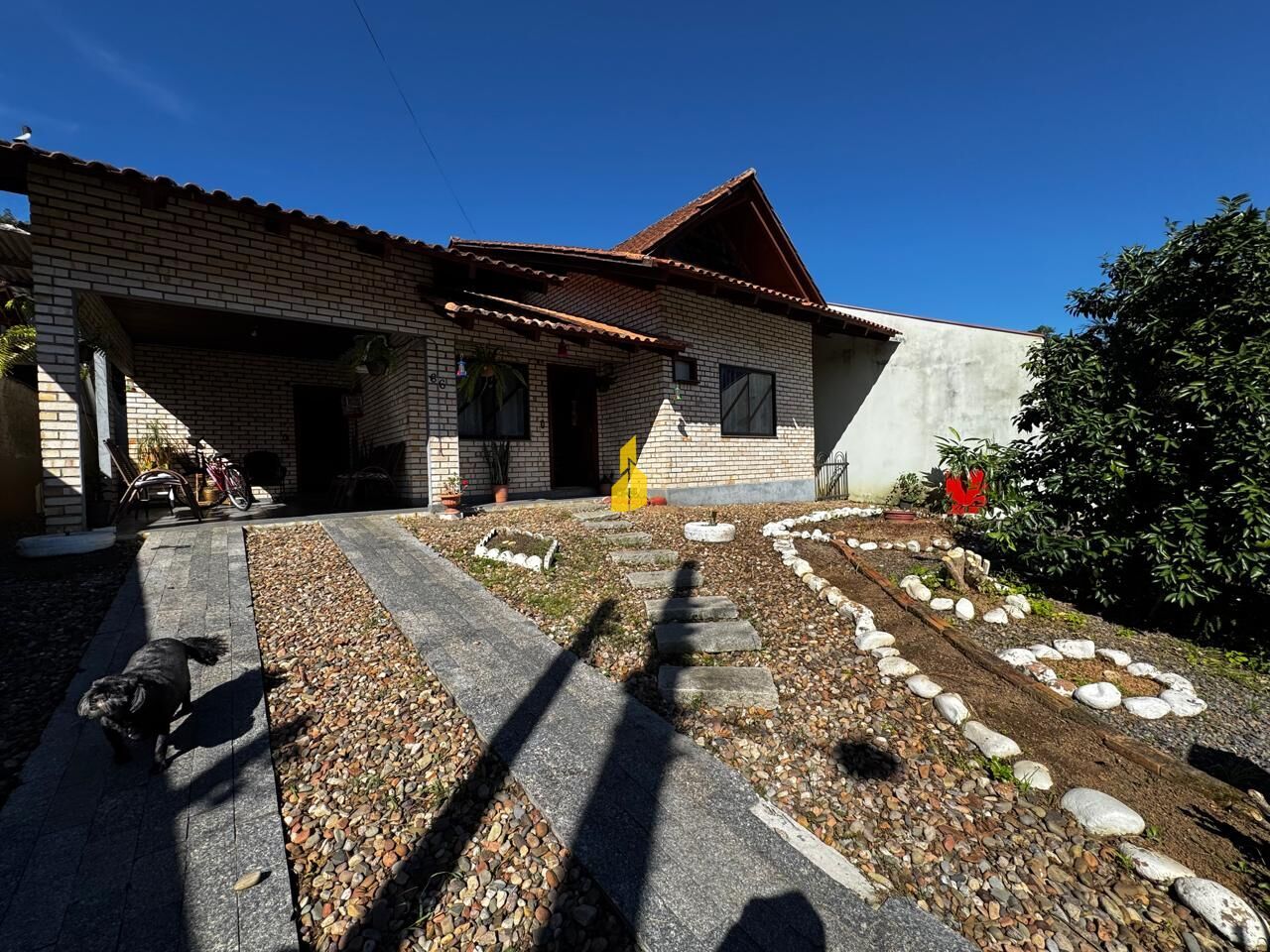 Imóvel construído em tijolos a vista com amplo espaço de terreno