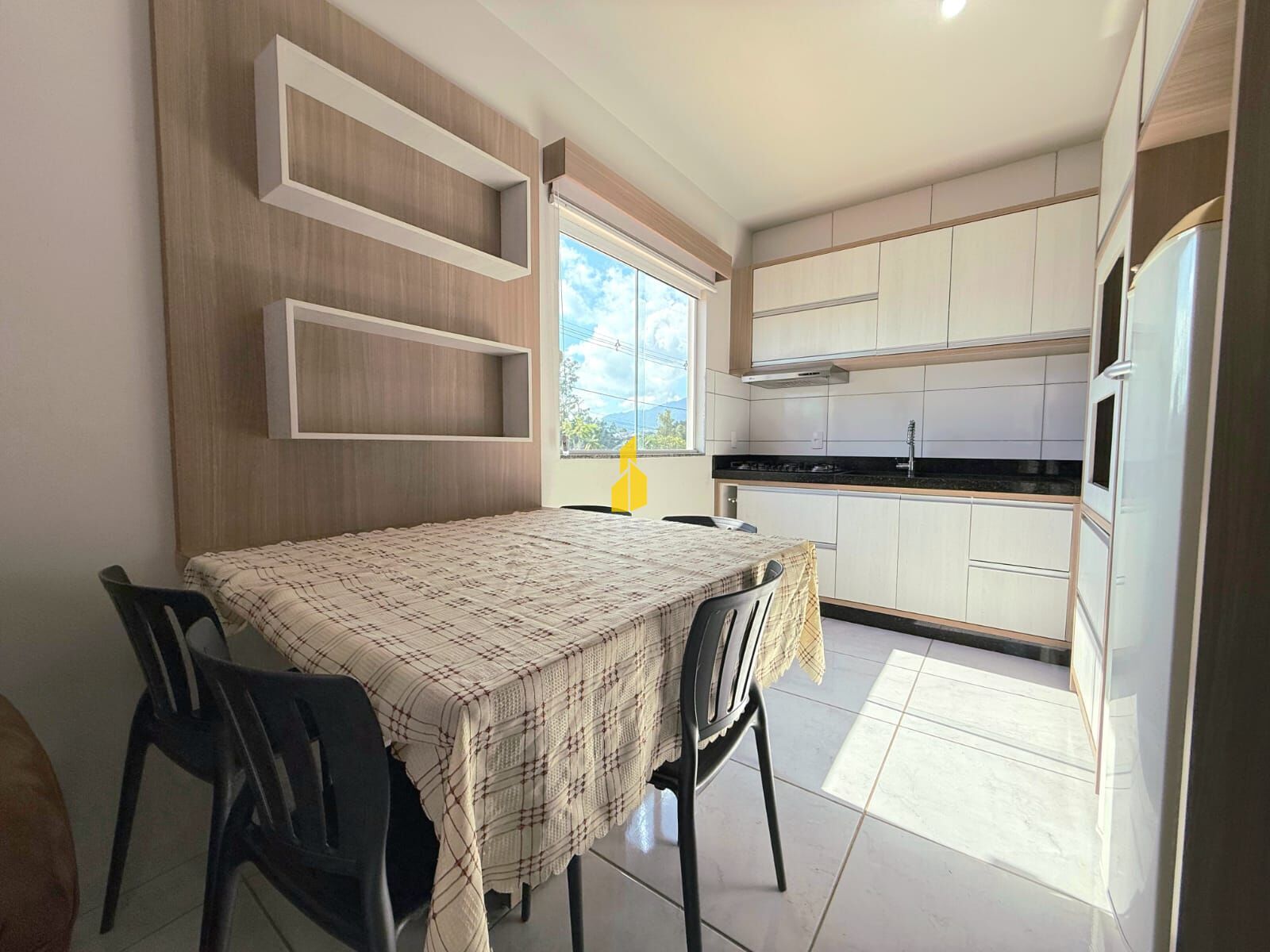 - Sala e cozinha integradas, ambiente moderno e funcional.