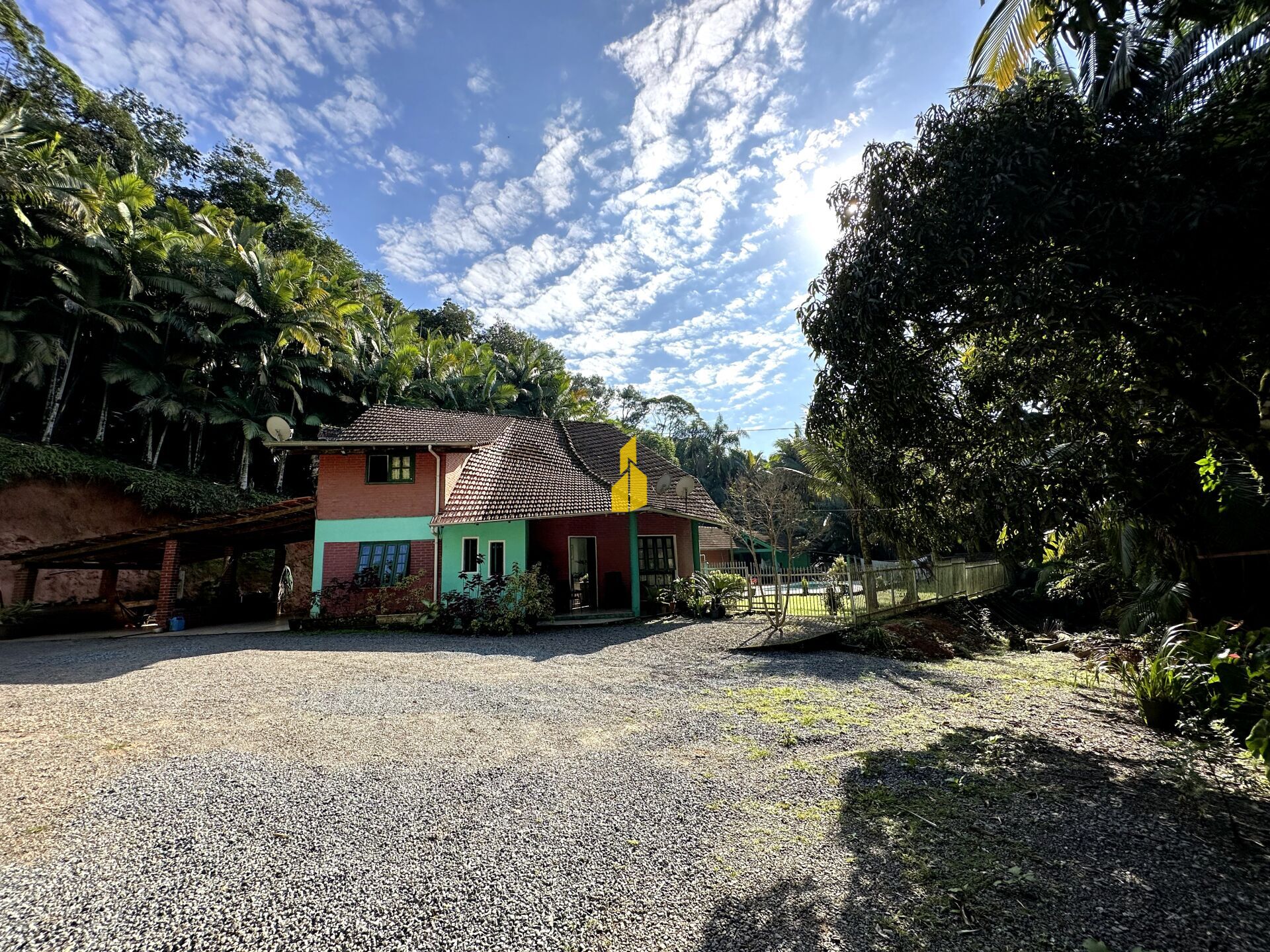 Em um terreno de 12.832,42m² esta casa de 346,76m² de 2 pavimentos possui: