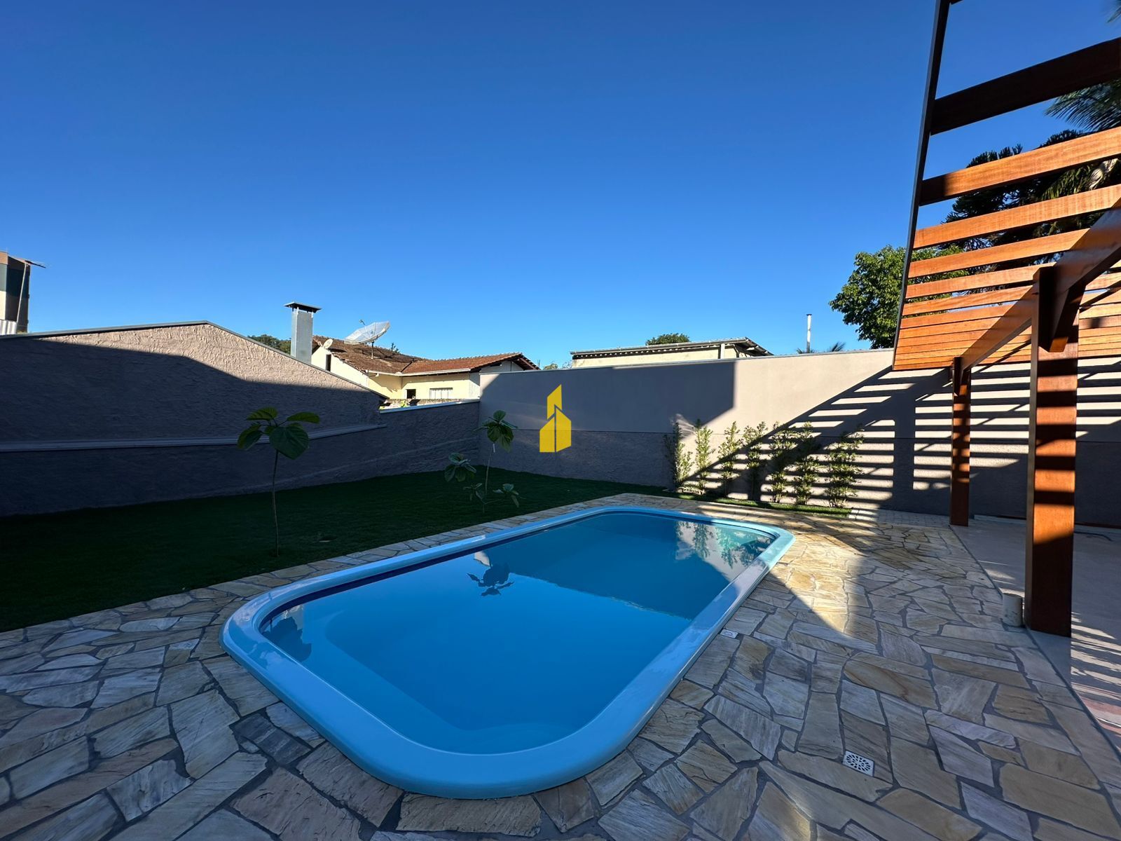 ➩ Área de festa não coberta com encanamento e pergolado prontos (35m²)