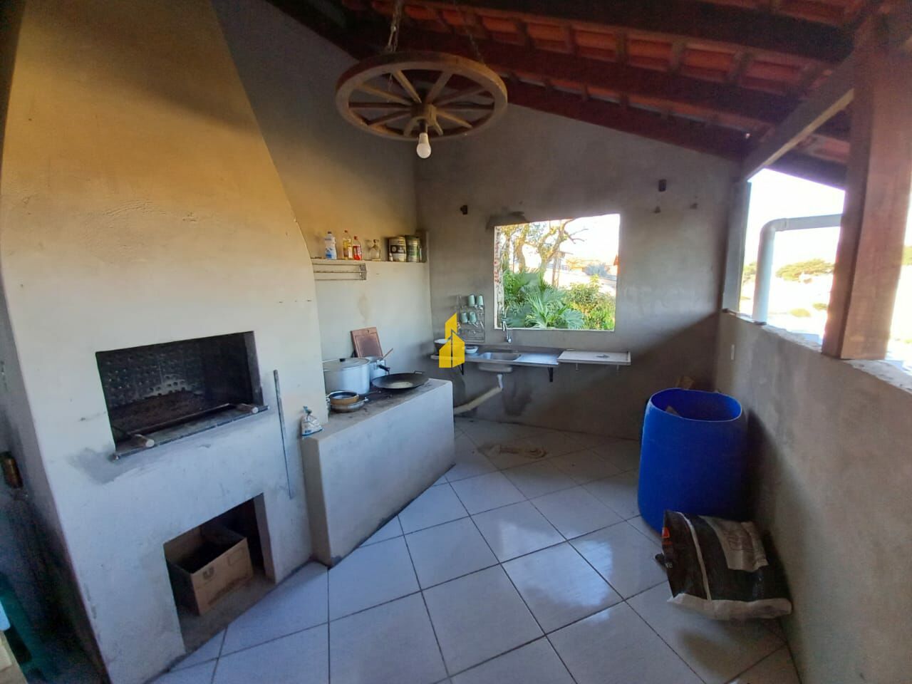 Área de festas com fogão a lenha