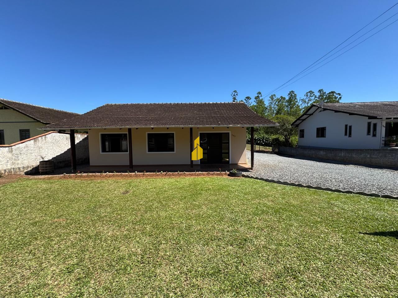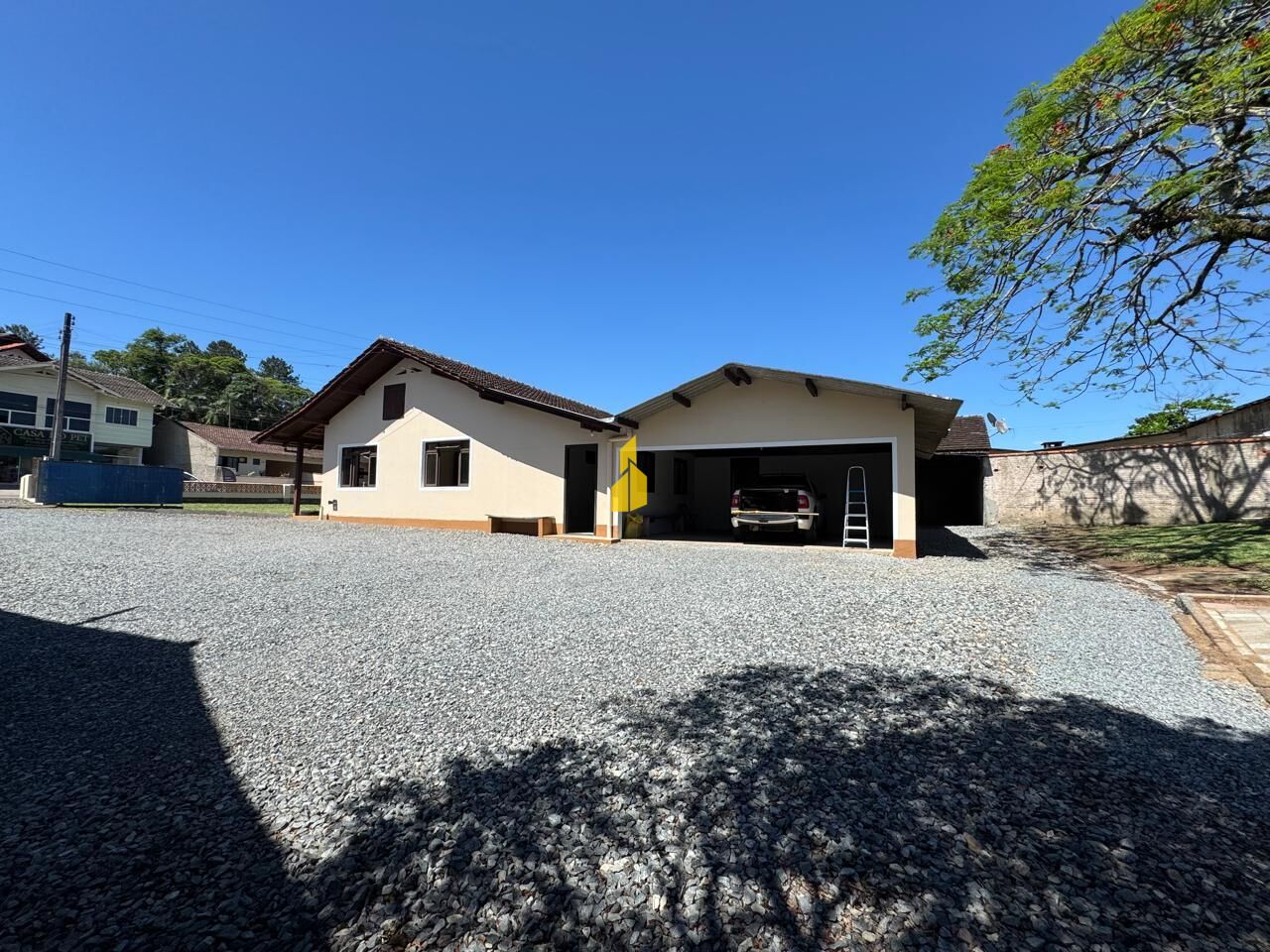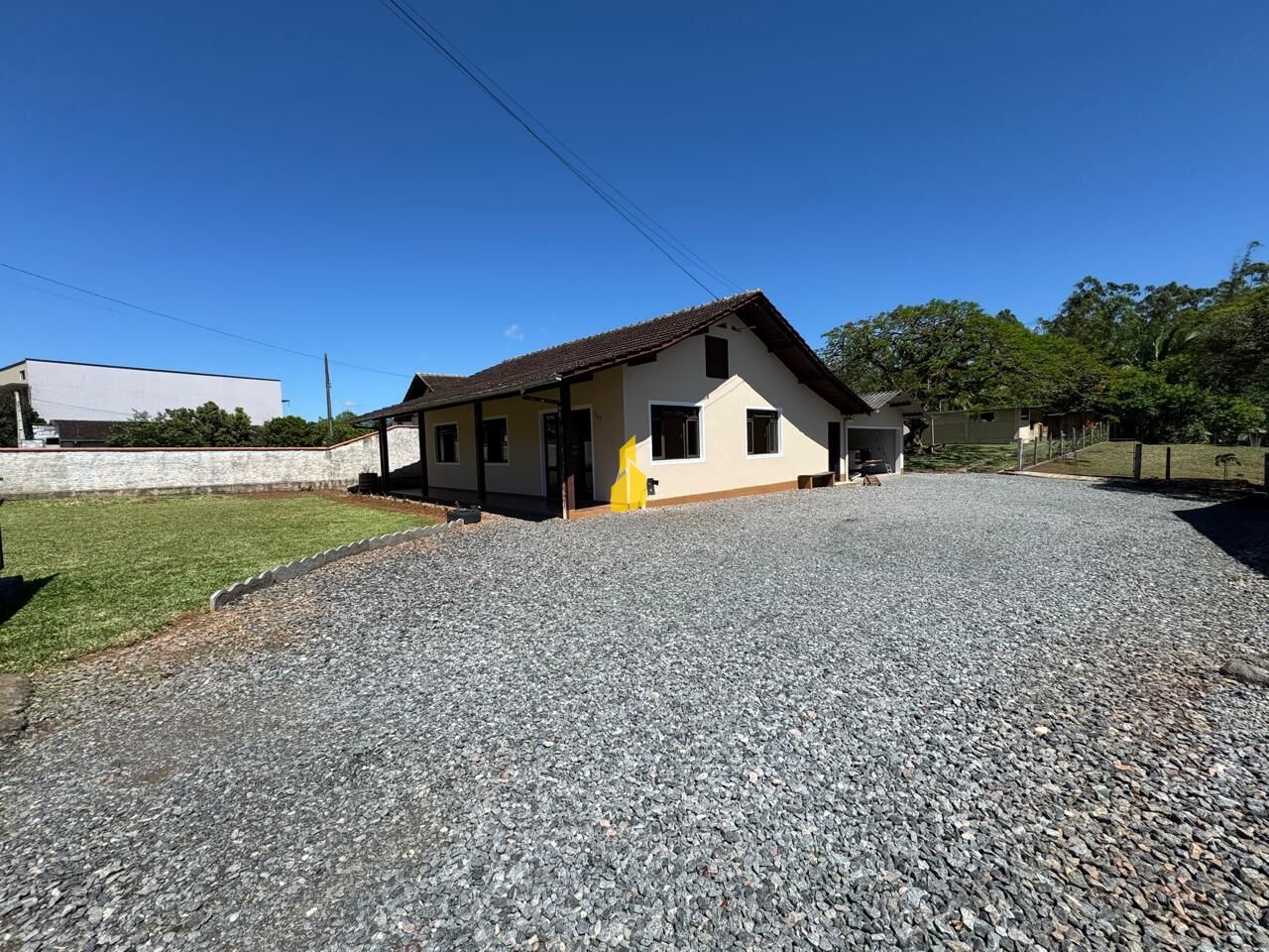 Casa de alvenaria com 4 dormitórios e 2 banheiros, possui 217,19 m² de área construída. Localizada em terreno de 4.778,53 m² de área total, de frente para rua principal do bairro Pomeranos. Próximo à rodovia. Livre de enchentes, documentação em dia!