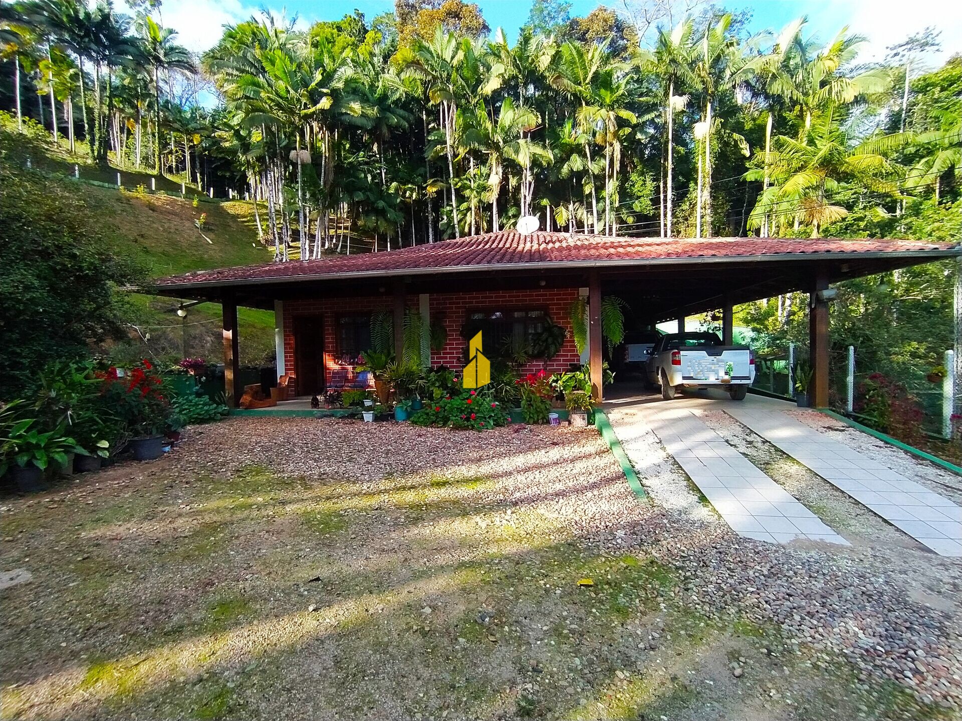 Cercado por muito verde, essa belíssima propriedade possuí muitas árvores frutíferas e hortas (Abacate, banana, laranja, pêssego, tangerina, palmitos, palmeira, aipim...)